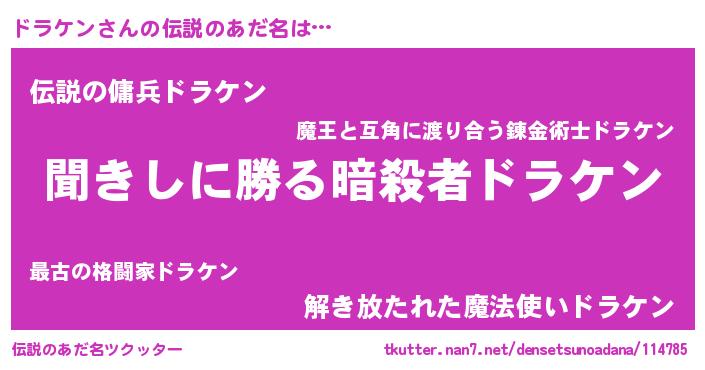 | 意味不明あだ名 | 『自称ドラケン』『たけのこ科ドラケン属』 |