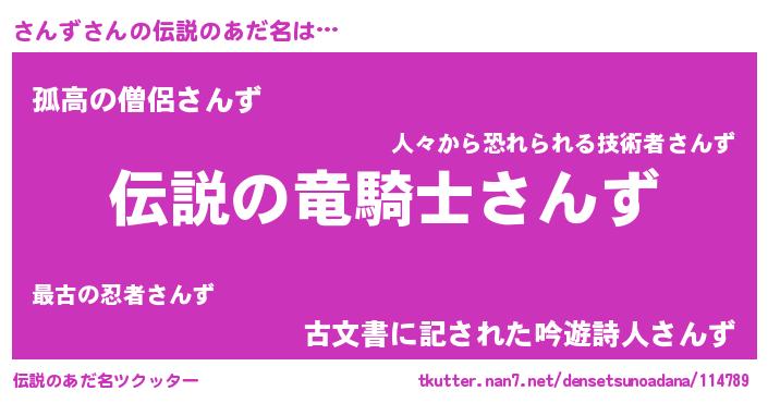 | 男性向けラノベタイトル風あだ名 | 『緋弾のサンズ』『魔法科高校のさんず』 |