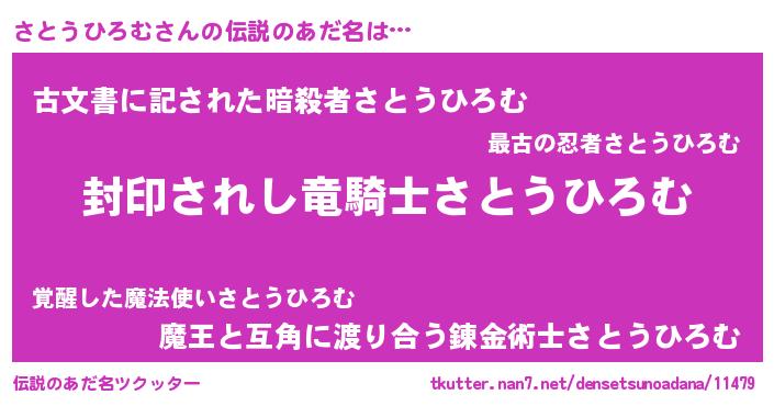 | ヒーロー風カッコイイあだ名 | 『スーパーサトウヒロム』『仮面サトダー』 |