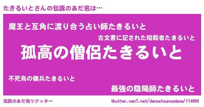 | ヒーロー風カッコイイあだ名 | 『黄金騎士タキ』『仮面タキダー』 |
