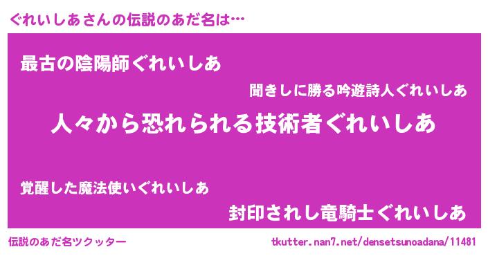 | ヒーロー風カッコイイあだ名 | 『仮面グレダー』『正義の使者ぐれいしあ』 |