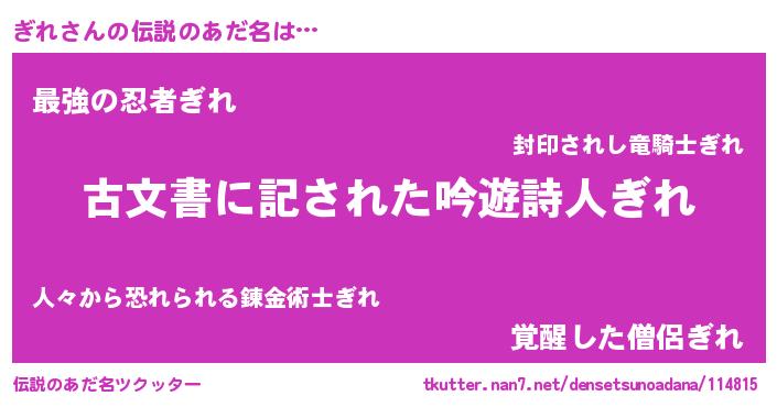 | ヒーロー風カッコイイあだ名 | 『ネオギレ』『ウルトラぎれマン』 |