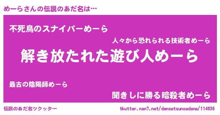 | 意味不明あだ名 | 『とにかく怪しいめーら』 |