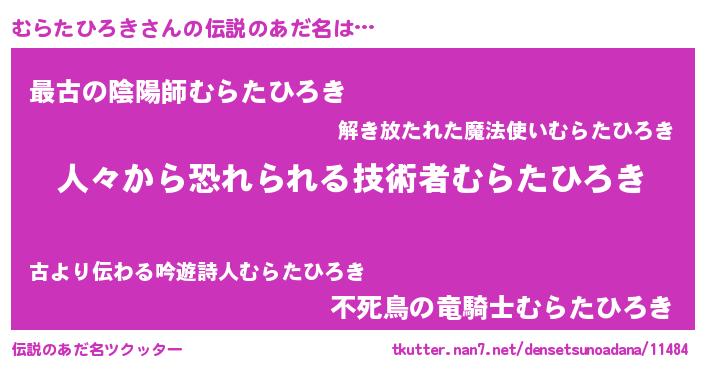| 男性向けラノベタイトル風あだ名 | 『おまえをオタクにしてやるから、俺をむらたひろきにしてくれ! 』 |