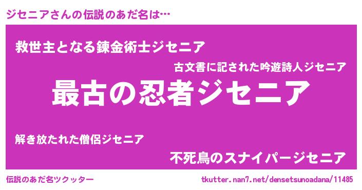 | 男性向けラノベタイトル風あだ名 | 『転生したらジセニアだった件』 |
