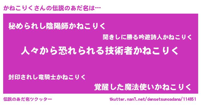 | ファンタジー風あだ名 | 『クインカット』『カークカネラー』 |