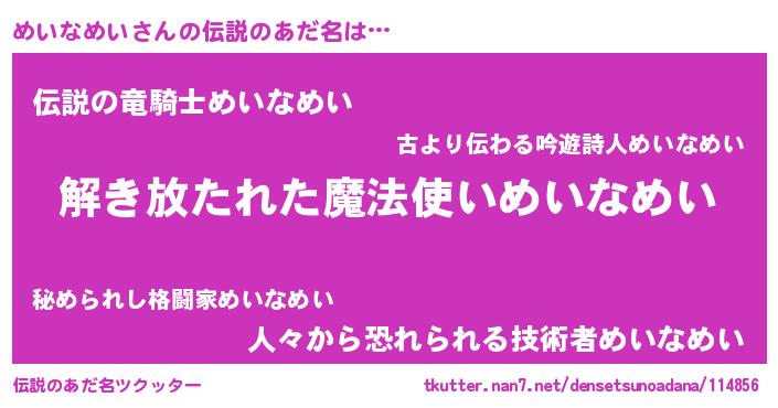 | ポケモン風あだ名 | 『メロメッイ』『ヒメイナメイ』 |