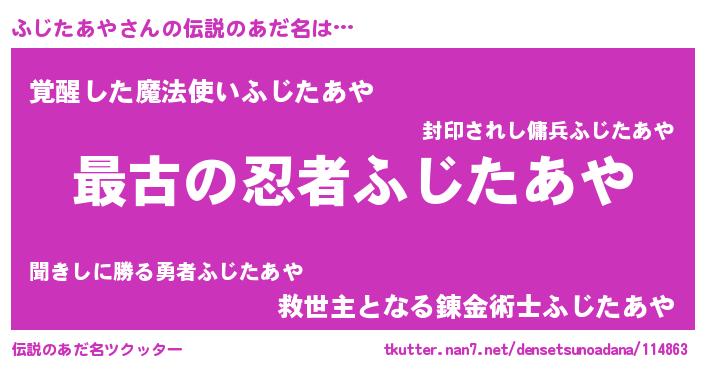 | 肩書あだ名 | 『ふじたあや大尉』『ふじたあや総理大臣』 |