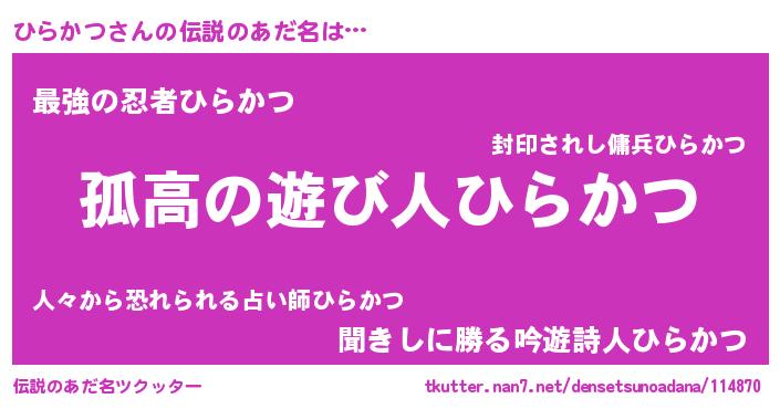 | 意味不明あだ名 | 『住所不定無職ひらかつ(98歳)』 |