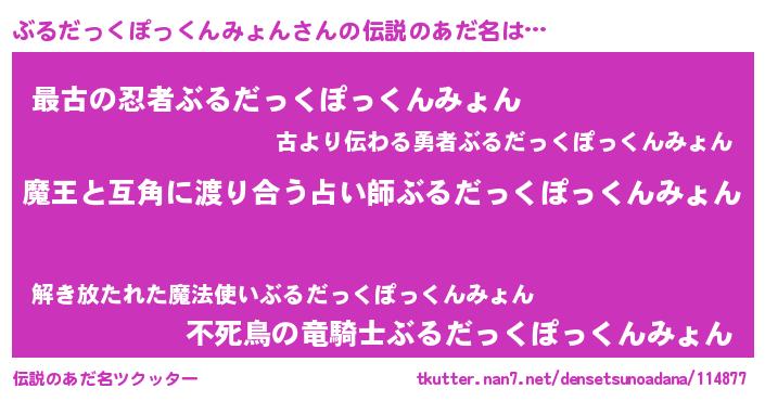 | 女子向けラノベタイトル風あだ名 | 『ぶるだっくぽっくんみょん恋絵巻』 |