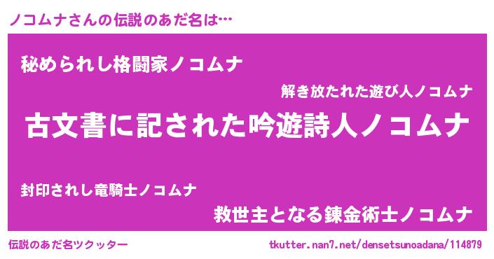 | 男性向けラノベタイトル風あだ名 | 『この素晴らしい世界にノコムナを!』 |