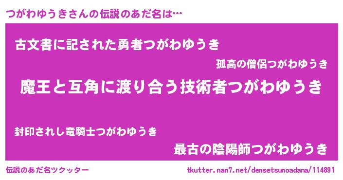 | 女子向けラノベタイトル風あだ名 | 『つがわゆうき恋絵巻』 |
