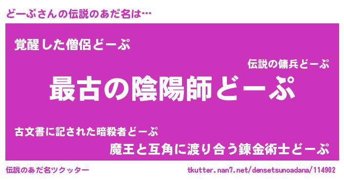 | 男性向けラノベタイトル風あだ名 | 『この素晴らしい世界にどーぷを!』 |