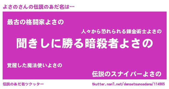 | 女子向けラノベタイトル風あだ名 | 『よさのなんてお断りですっ。』 |