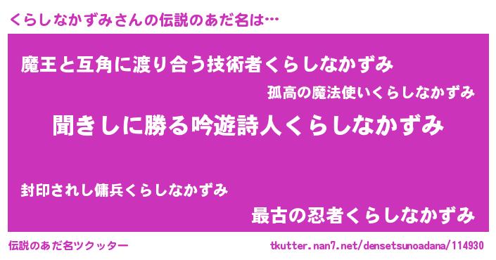 | 意味不明あだ名 | 『住所不定無職くらしなかずみ(11歳)』 |