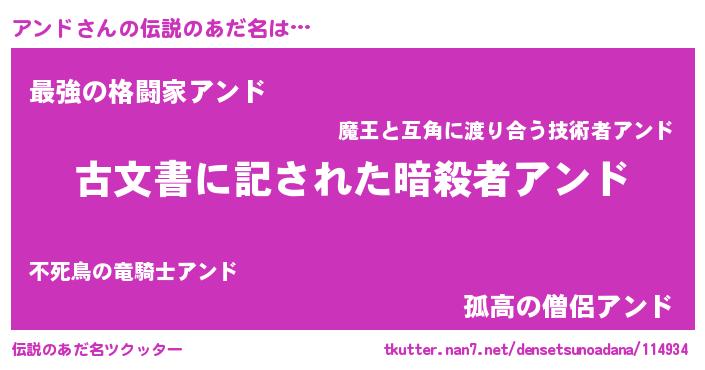 | 男性向けラノベタイトル風あだ名 | 『アンドに滅ぼされるだけの簡単なお仕事です』 |