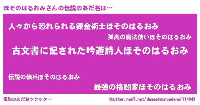 | 意味不明あだ名 | 『永久保存ほそのはるおみ』 |
