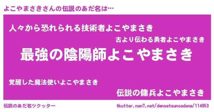 | ファンタジー風あだ名 | 『エターナルヨコヤマサキー』 |