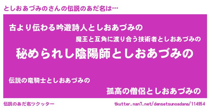 | 意味不明あだ名 | 『自称としおあづみの』 |