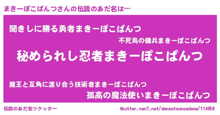 | 男性向けラノベタイトル風あだ名 | 『はたらくまきーぽこぱんつさま!』 |