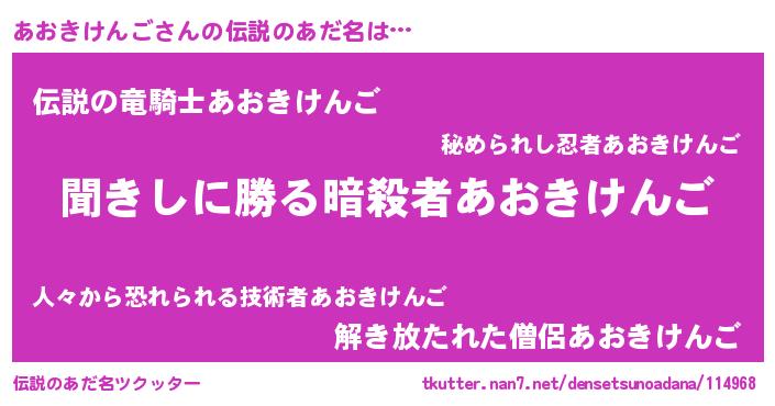 | 意味不明あだ名 | 『住所不定無職あおきけんご(47歳)』 |