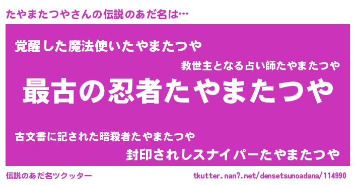 | ヒーロー風カッコイイあだ名 | 『サイバー戦士タヤマタツヤ』 |