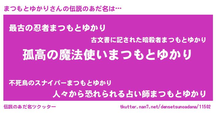 | 意味不明あだ名 | 『自称まつもとゆかり』 |