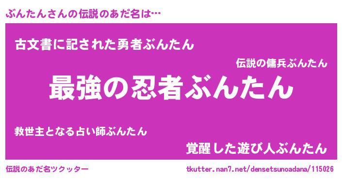 | 男性向けラノベタイトル風あだ名 | 『うちのぶんたんが世界を掌握している!』 |