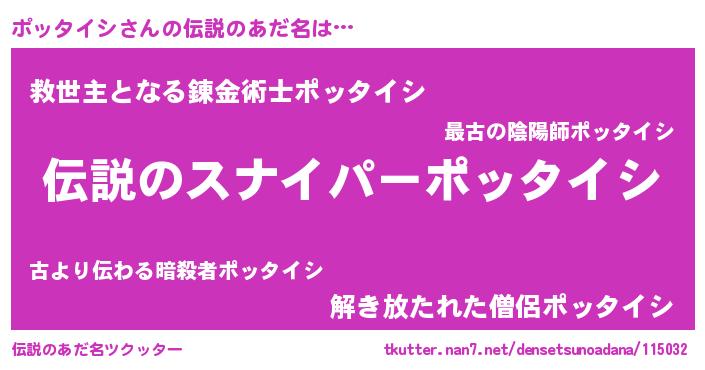 | 意味不明あだ名 | 『住所不定無職ポッタイシ(91歳)』 |