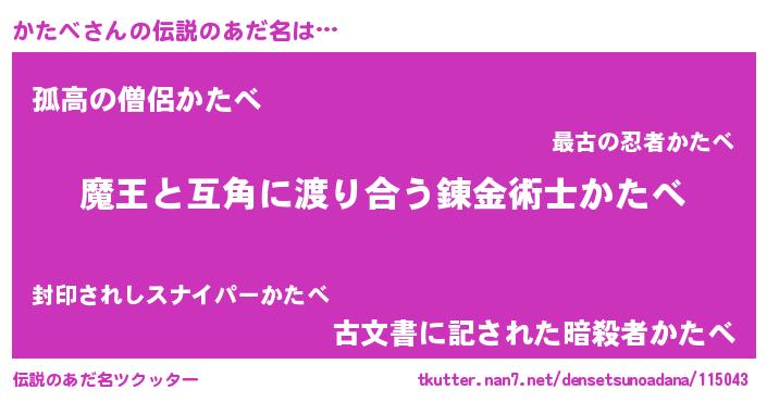 | 意味不明あだ名 | 『眠気覚ましガムかたべ味』『自称かたべ』 |