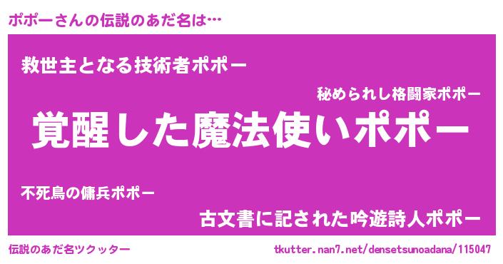 | ヒーロー風カッコイイあだ名 | 『究極戦士ポポー』『炎刃騎士ポポ』 |