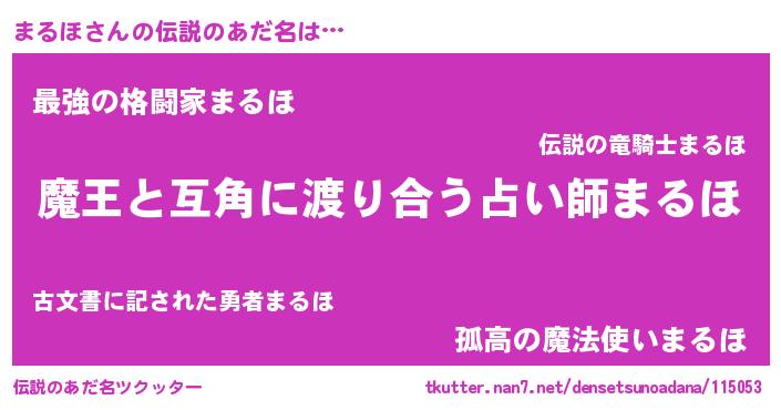 | ヒーロー風カッコイイあだ名 | 『慈愛の使者まるほ』『銀牙騎士マル』 |