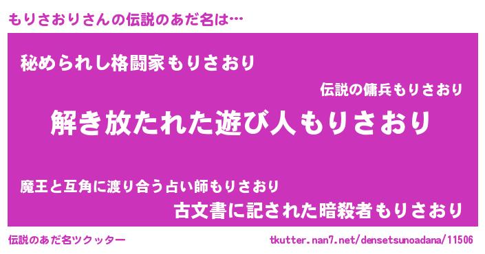 | 意味不明あだ名 | 『自称もりさおり』『永久保存もりさおり』 |