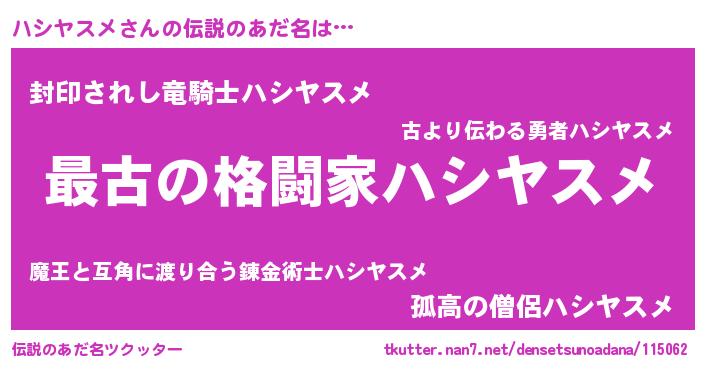 | ヒーロー風カッコイイあだ名 | 『ウルトラハシヤスメマン』 |