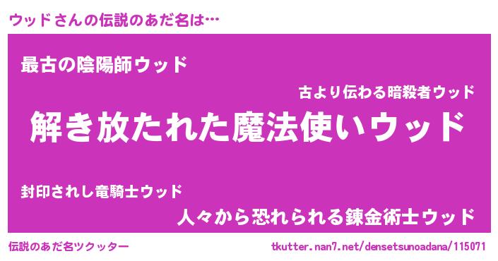 | ヒーロー風カッコイイあだ名 | 『サイバー戦士ウッド』『幻影騎士ウッ』 |