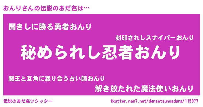 | ヒーロー風カッコイイあだ名 | 『ウルトラおんりマン』『仮面オンダー』 |