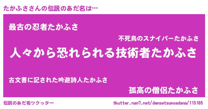 | ヒーロー風カッコイイあだ名 | 『仮面タカダー』『慈愛の使者たかふさ』 |