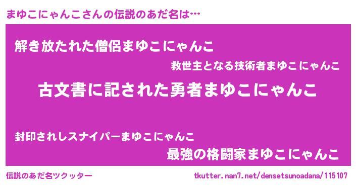 | ヒーロー風カッコイイあだ名 | 『ネオマユコニャンコ』『暗黒騎士マユ』 |