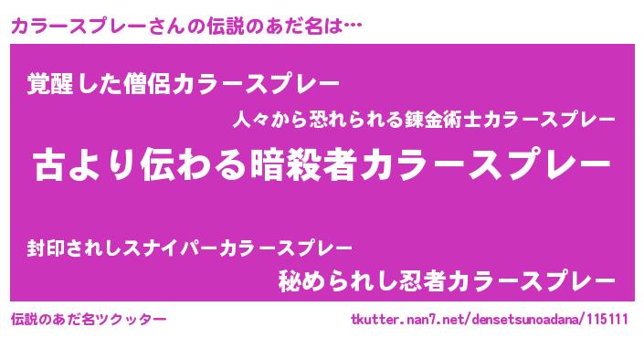 | 意味不明あだ名 | 『永久保存カラースプレー』 |