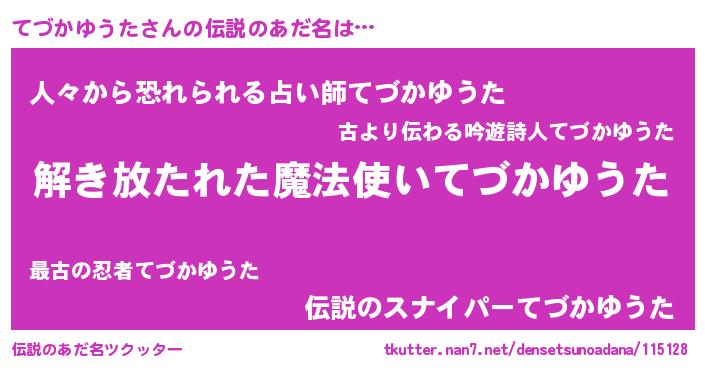 | 胡散臭い通販商品みたいなあだ名 | 『伝統あるサプリメント…その名も「てづかゆうた」』 |