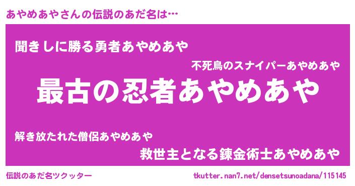 | ヒーロー風カッコイイあだ名 | 『ウルトラあやめあやマン』 |