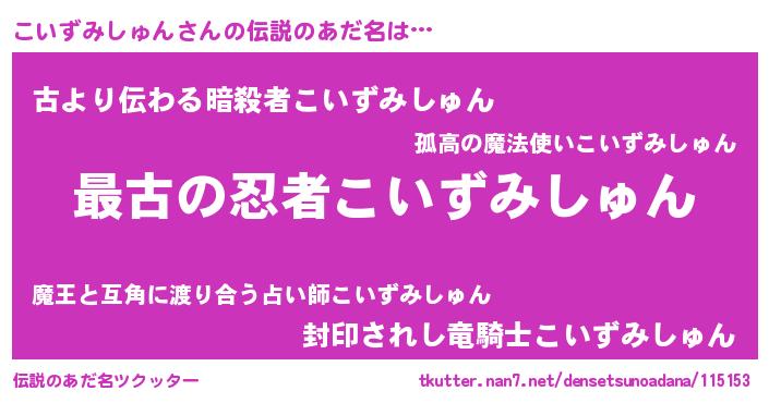| ヒーロー風カッコイイあだ名 | 『仮面コイダー』『ネオコイズミシュン』 |