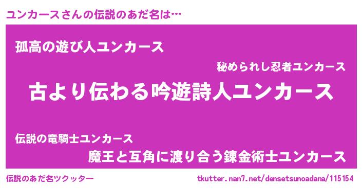 | ヒーロー風カッコイイあだ名 | 『ネオユンカース』『幻影騎士ユン』 |