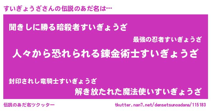 | ポケモン風あだ名 | 『スイゴンZ』『スックウザ』 |
