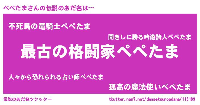 | ヒーロー風カッコイイあだ名 | 『ウルトラぺぺたまマン』『仮面ペペダー』 |