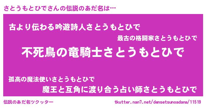 | ヘコむあだ名 | 『さとにー』『さとうもとひで(小並感)』 |