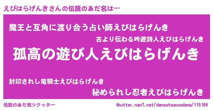 | 意味不明あだ名 | 『とにかく怪しいえびはらげんき』 |