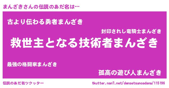 | ヒーロー風カッコイイあだ名 | 『天空の使者まんざき』『ネオマンザキ』 |