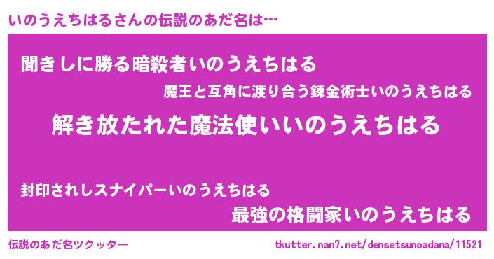 | ヒーロー風カッコイイあだ名 | 『魔戒騎士イノ』『ネオイノウエチハル』 |