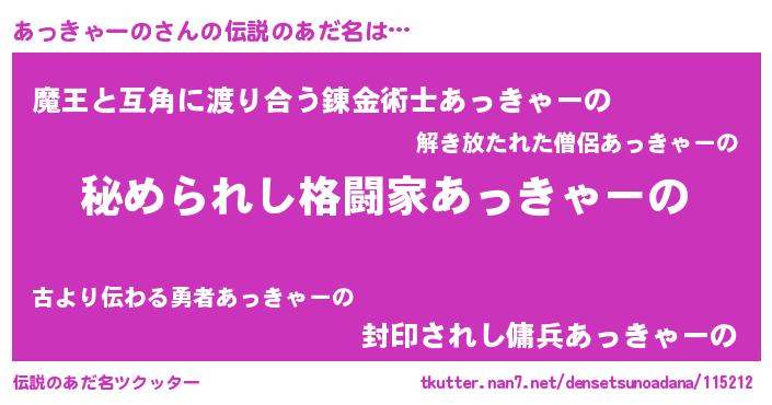 | 男性向けラノベタイトル風あだ名 | 『やはりあっきゃーのの青春ラブコメはまちがっている 』 |